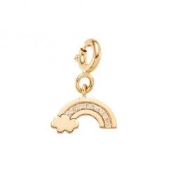 From the Charmed Collection. Accented with a row of shimmering pavé white diamonds, this whimsical 14K yellow gold rainbow charm features a spring ring clasp ideal for clipping onto Zoë Chicco’ssmall or medium oval-link chains or small paperclip chains.