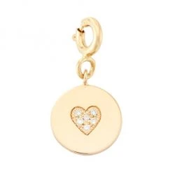From the Charmed Collection. Featuring a diamond-encrusted heart, this 14K yellow gold disc charm is detailed with a spring ring clasp ideal for clipping onto Zoë Chicco’s small or medium oval-link chains or small paperclip chains.