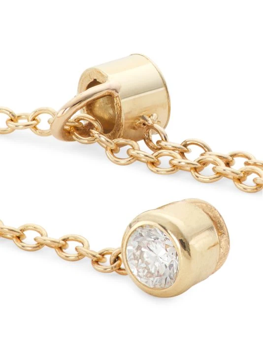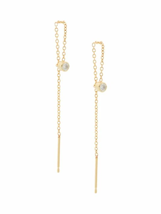 Zoë Chicco’s Thread Thru earrings are crafted of 14K yellow gold, featuring a chain-link design suspended from a sparkling bezel-set diamond post.
