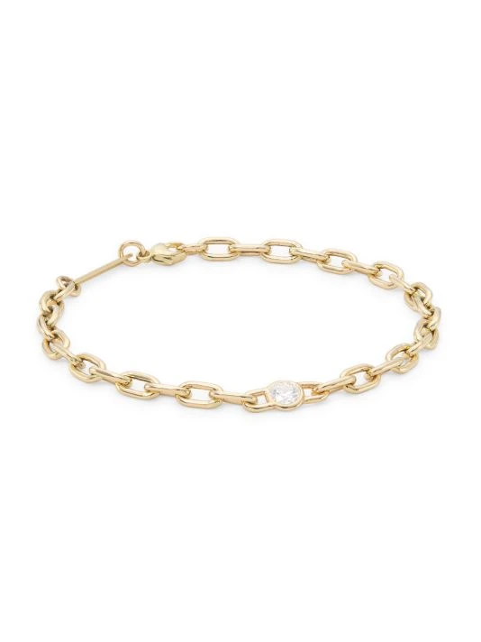 From the Floating Diamonds Collection. Made of polished 14K yellow gold, Zoë Chicco’s bracelet features a sparkling round brilliant-cut diamond joined to an oval-link chain. This elegant accessory is handcrafted by master artisans in the designer’s Los Angeles-based studio.
