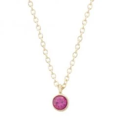 From the Pink Sapphires Collection. Handcrafted of 14K yellow gold, Zoë Chicco’s necklace features a petite round bezel-set pink sapphire. This vibrant gemstone is suspended from an adjustable cable chain that secures with a spring-ring clasp.
