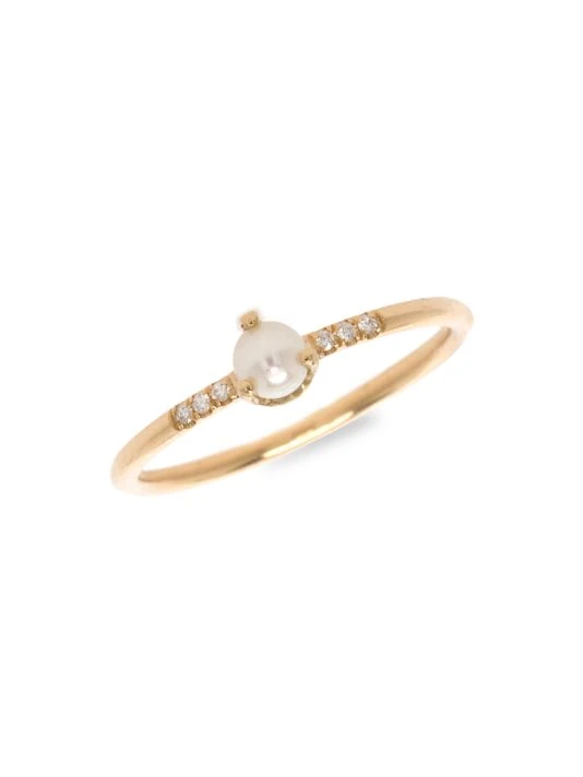 A luminous prong-set pearl rests on a slim 14K gold band accented with six french pavé-set diamonds.