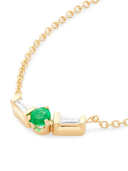 Zoë Chicco’s elegant 14K-yellow-gold necklace features a pendant with an emerald center and tapered diamond baguettes on a delicate chain.