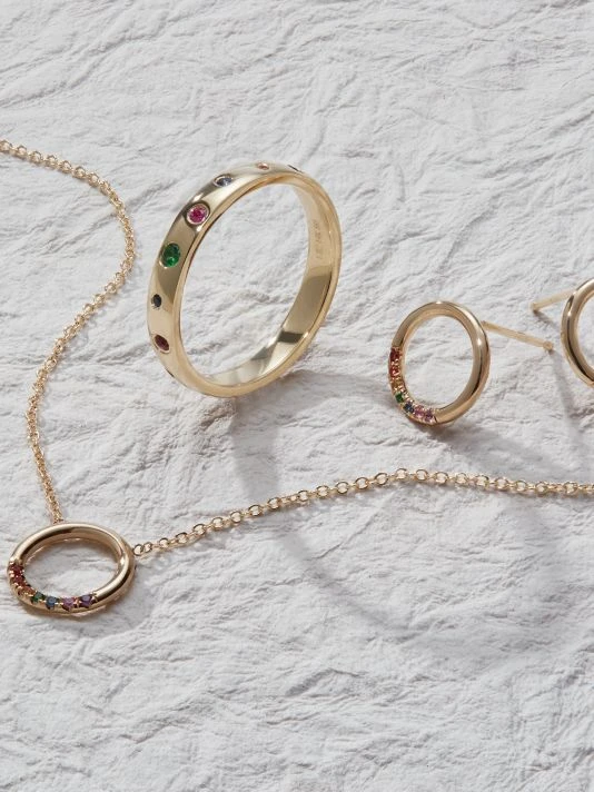 Ring stud earrings with an array of shimmering gemstones.