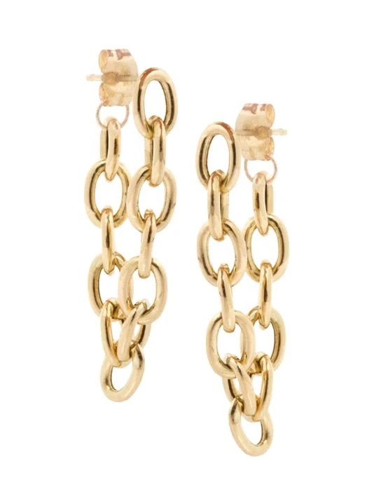 Polished yellow gold drop earrings in a soft chain silhouette.