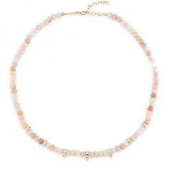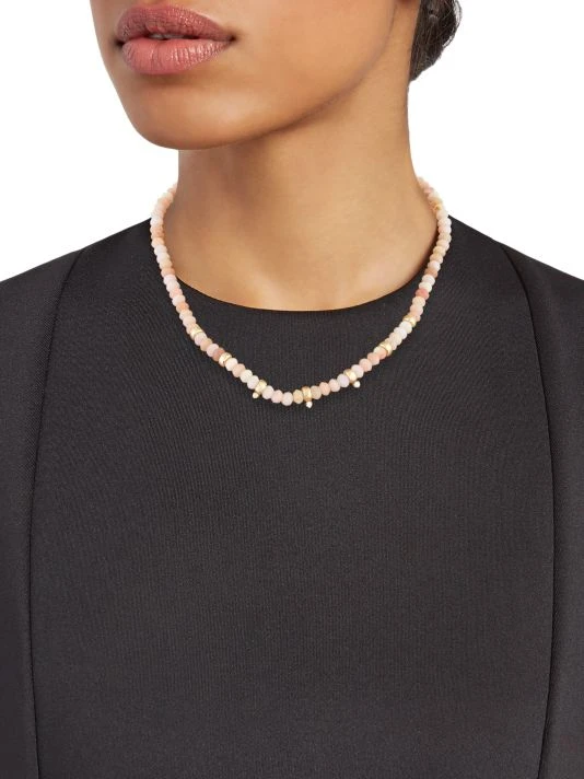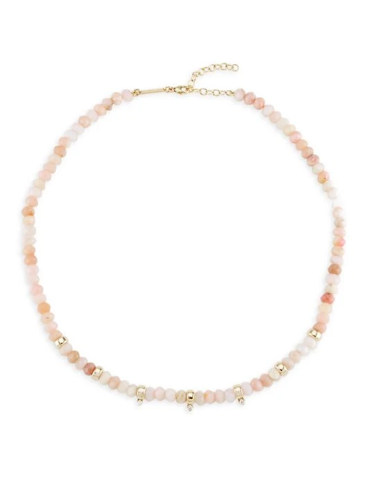 Zoë Chicco’s breathtaking necklace features a strand of pink opal gemstones interspersed with 14K-yellow-gold and diamond rondelle beads.