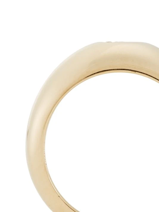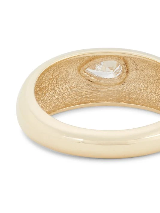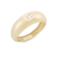 From the Aura Collection. A gypsy-set pear diamond centers this brushed gold ring, crafted with a radiant rounded shape.