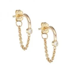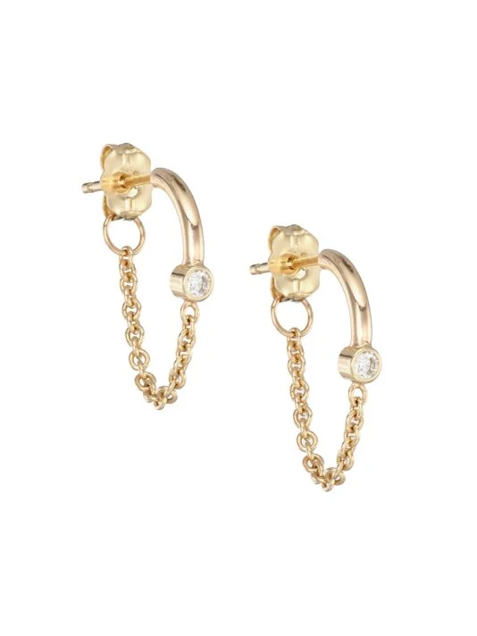 From the Bezel Diamonds Collection. A bezel-set diamond centers these front-to-back wire and chain huggie hoop earrings.
