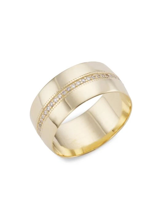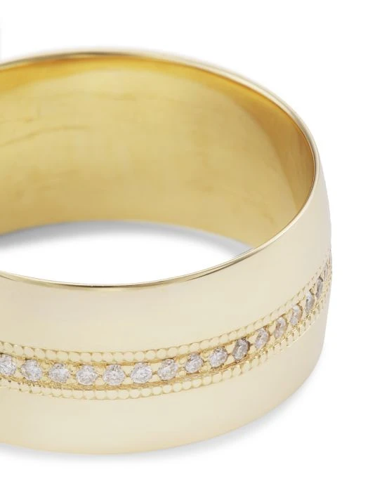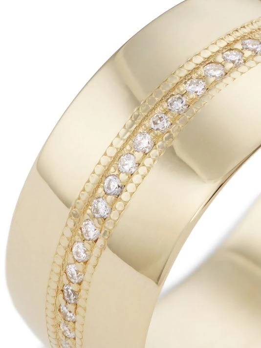 From the Heavy Metal Collection. Made of 14K yellow gold, this striking cigar band ring sparkles with a center row of pavé white diamonds.