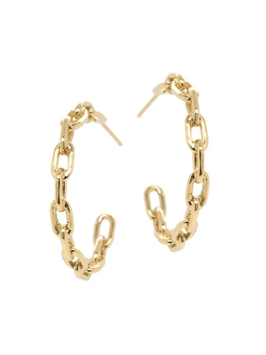From the Heavy Metal Collection. Elevated with a rugged chain-link design, these hoop earrings are the epitome of artisanal refinement.