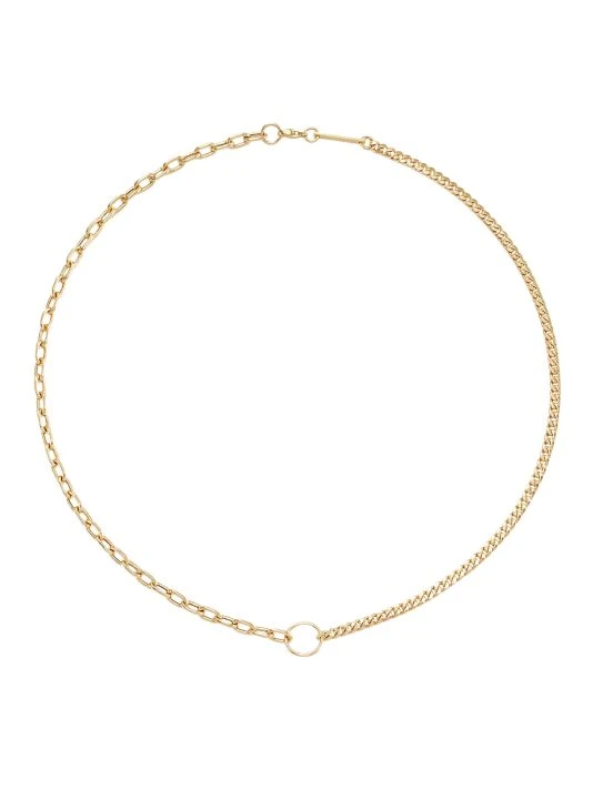 From the Heavy Metal Collection. Composed of 14K yellow gold oval and curb links, this chic chain necklace features a circular ring ideal for hanging Zoë Chicco’s whimsical charms.