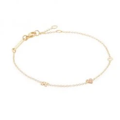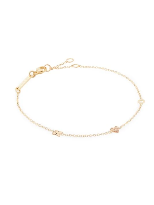 Zoë Chicco’s 14K-yellow-gold chain bracelet is punctuated by petite “X” and “O” charms and a diamond-encrusted heart. This elegant piece is from the label’s Itty Bitty Words Collection, a line of dainty, minimalist jewelry ideal for everyday wear.