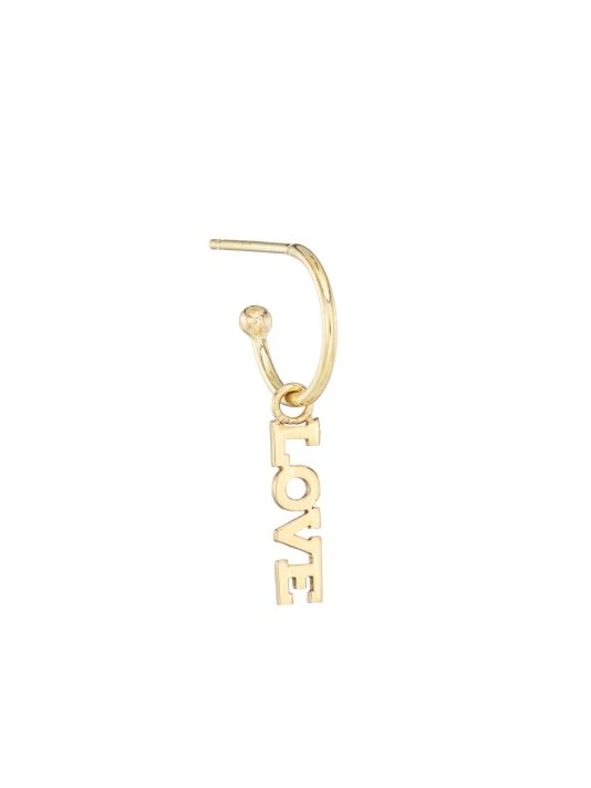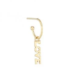 From the Itty Bitty Words Collection. A sweet Love charm suspends from this petite huggie hoop earring.