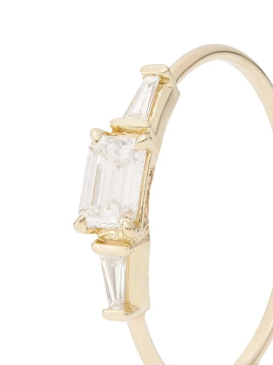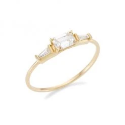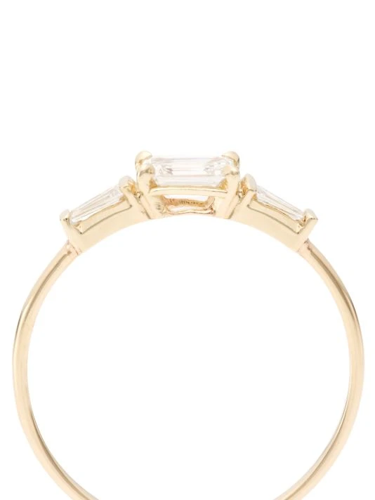 From the Paris Collection. Tapered baguettes frame a center emerald-cut diamond in this delicate gold stacking ring.