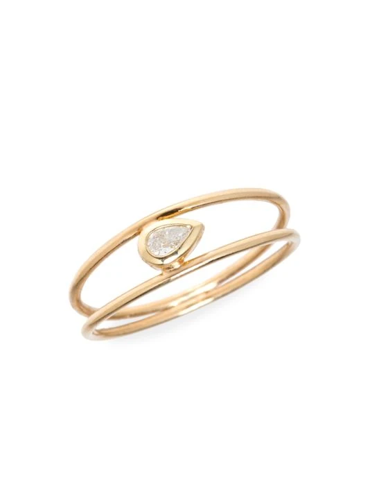 From the Paris Collection. Simple but elegant 14K yellow gold double band ring is set with a teardrop diamond prong accent.
