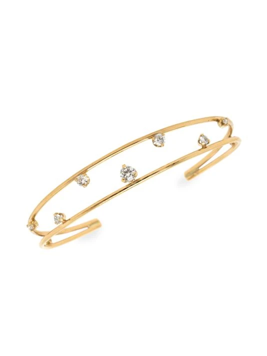 From the Prong Diamonds Collection. This sleek double cuff bracelet is crafted of 14K yellow gold and set with staggered prong diamonds for a twinkling look.