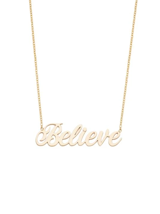 From the Tender Tokens Collection. Crafted of 14K yellow gold, Zoë Chicco’s necklace features a polished “Believe” nameplate pendant fixed to a fine cable chain. This inspirational accessory is handcrafted by master artisans in the designer’s Los Angeles-based studio.